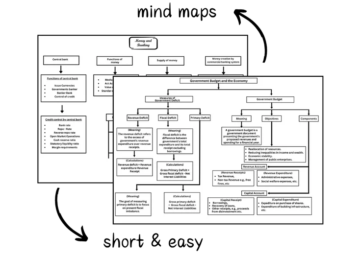 We create a visual summary Of the chapters, This mind map helps you understand the main ideas and connections between them in a simple and organised way. It's like a roadmap that guides you through the important points of each chapter.